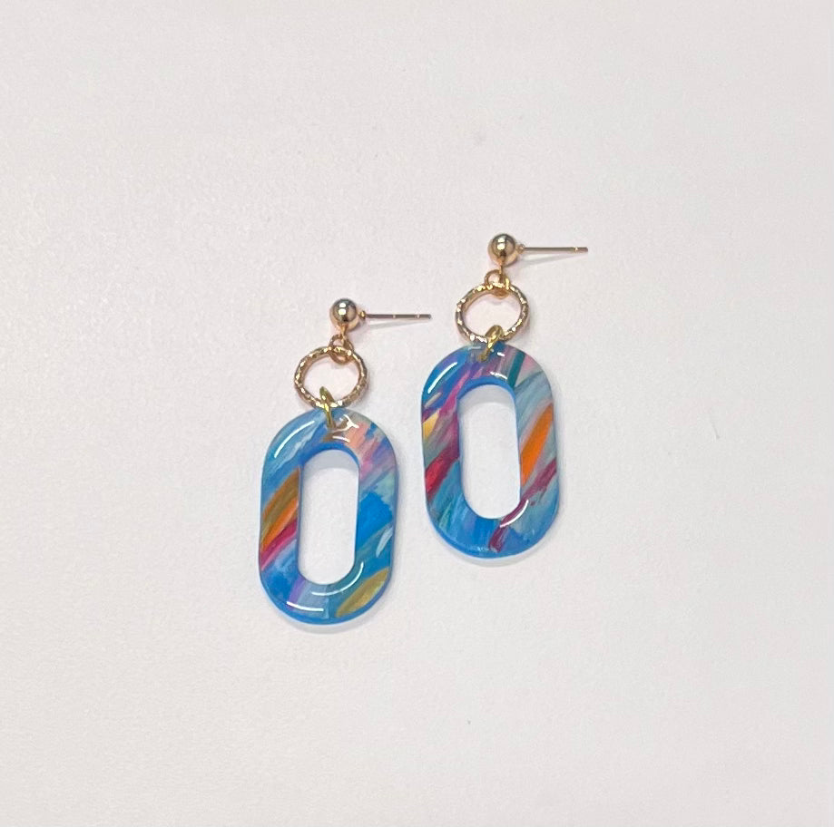 Hand painted hollow oval earrings
