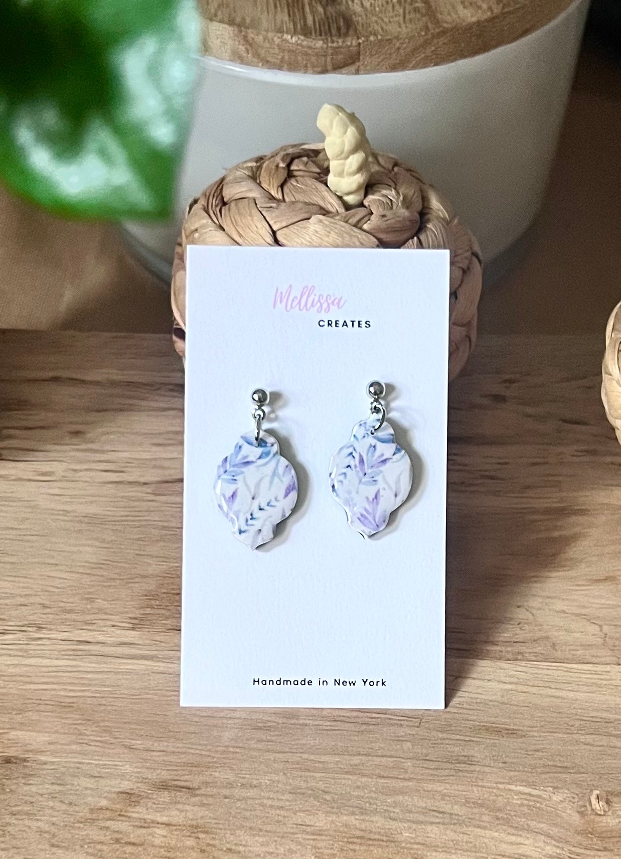 These handmade earrings are made of polymer clay, transfer design with a resin overlay.
